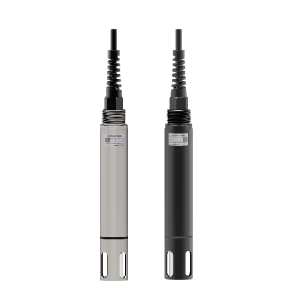 电导率传感器基于伏安法原理开发。在样品溶液中放置两个平⾏对⽴的⽯墨电极,通过在两个电极上施加⼀个交流电场激励,通过测量导通电流,利用欧姆定律计算出样品溶液的电导率。