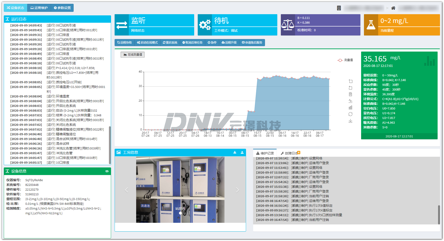 DNVSmartoNet智慧运营平台系统:该系统基于物联网技术、大数据分析技术、数据加密技术、信息传输技术,可实现对数百(千)个水质检测设备的远程维护、智能诊断和数据分析等智慧运营的功能,最终达到设备管理智能化,甚至运营“无人化”的目的,利用该技术,业主可大幅降低设备的运行、管理和维护的成本。